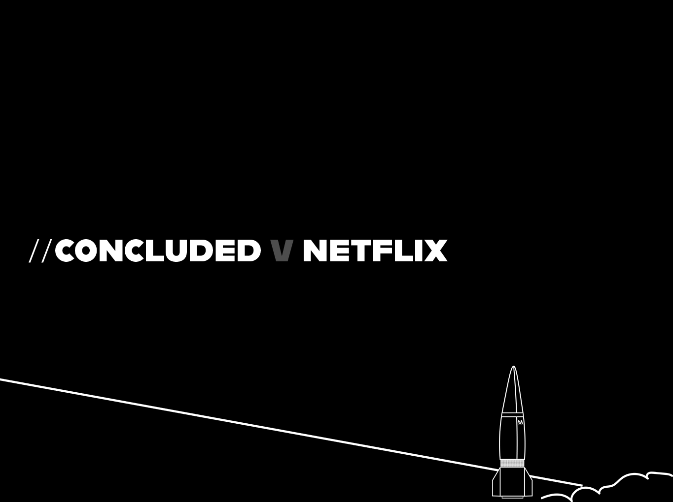 Twitter graphic comparing concluded TV shows to Netflix shows, featuring a rocket illustration and the text 'CONCLUDED V NETFLIX' with a black background.